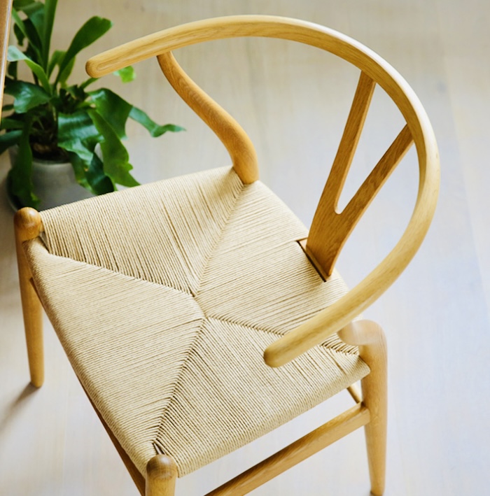 代表作の一つ「Yチェア(CH24)」は、その名の通りY字型の背もたれが特徴で、中国の明時代の椅子からインスピレーションを得て誕生しました。